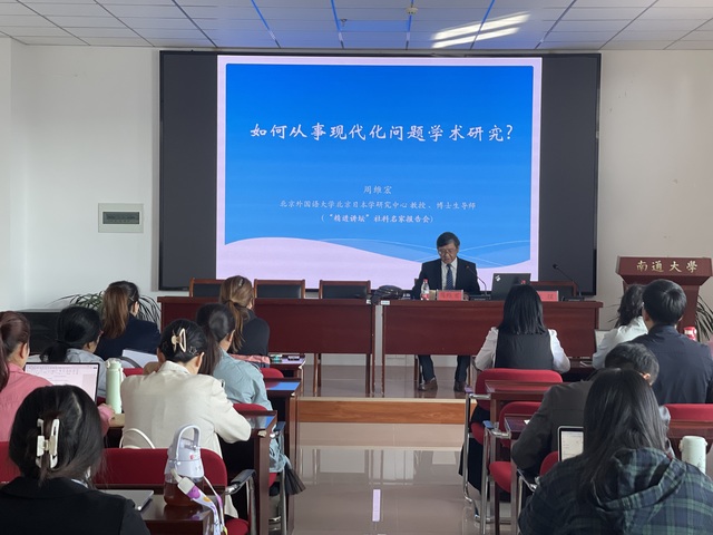10月24日下午,北京外国语大学日语学院北京日本学研究中心博士生导师周维宏教授应邀莅临我校“精进讲坛”,为师生作题为《如何从事现代化问题学术研究》的学术报告。
