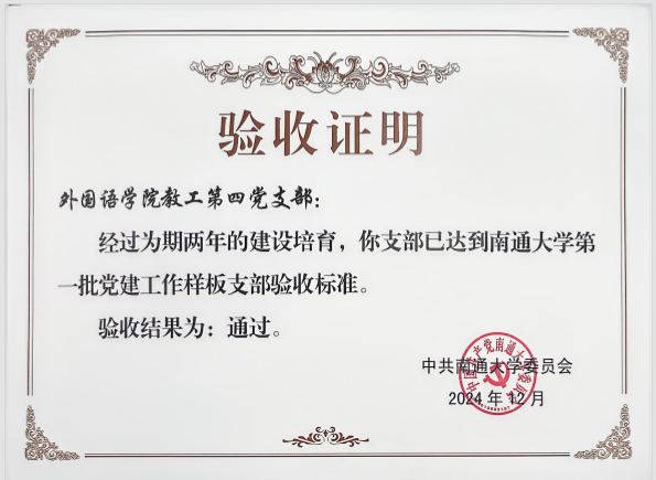 此次顺利通过验收,是对新葡的京集团350vip8888首页党委和教工第四党支部过去两年党建工作的高度认可。这不仅彰显了学院在党建工作方面的出色能力,也为校内其他院系和支部树立了优秀的典范。