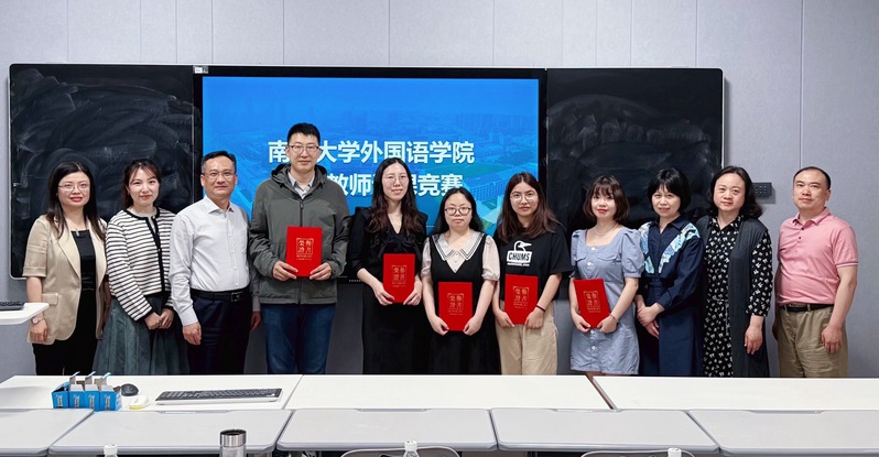本次竞赛邀请学院院长佘军、副院长王雪玉、院长助理张煜、公外一部主任陈璇以及英语系资深教师陈莹等五位教师担任评委。学院党委书记朱小娟到场观摩比赛。竞赛设置“教学设计方案陈述”和“课堂教学展示”两个环节,涵盖语言技能、文学翻译、跨文化思辨等多元主题。参赛教师将课程思政、中国传统文化与学科特色深度融合:徐旋老师通过课文“Dad”引导学生思考中西方父子情的文化差异。王福禄老师解读诗歌“Because I Could Not Stop for Death”,让听众感受韵律美,颠覆传统对死亡的印象。金晖老师通过不同文化中劝诫信的对比,引导学生反思文化差异,并通过将AI生成的信件与课文中的家信进行比较,培养学生人机互动能力及AI反思能力。冒雯老师的语法课别出心裁,以电子设备更换为话题,通过层次分明的教学活动,帮助学生建立语言形式与意义之间的联系,将枯燥的语法课上得生动有趣。圣小利老师以营销软文为切入点,介绍了软文的定义、类型和写作技巧。评委组结合教学设计方案的合理性和趣味性、课堂互动、课程思政、板书等多维度评分,最终圣小利老师获本次竞赛特等奖,冒雯、徐旋老师获一等奖,金晖、王福禄老师获二等奖。