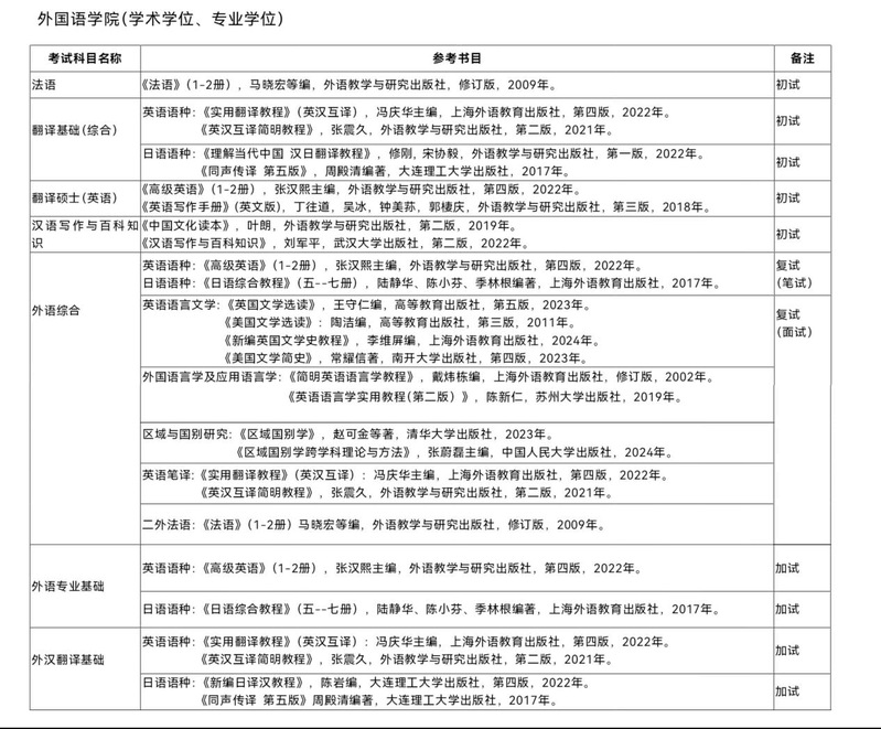 3.自命题考试科目参考书目