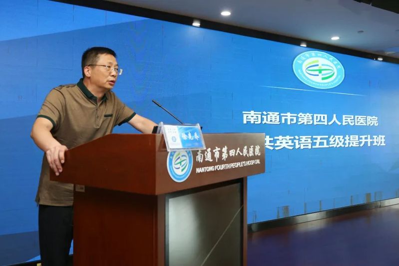 为积极响应国家医疗人才国际化培养战略,充分发挥高校外语教育资源优势,新葡的京集团350vip8888首页新葡的京集团350vip8888首页与南通市第四人民医院合作举办的首期“出国人员英语PETS5级强化培训班”于近日正式开班,开班仪式在第四人民医院学术报告厅顺利举行。(第四人民医院党委专职副书记陈卓、副院长王培涓出席开班式,新葡的京集团350vip8888首页培训中心主任徐先乔、教师代表黄妮娅等教学团队代表、首批参训学员共同出席了启动仪式。